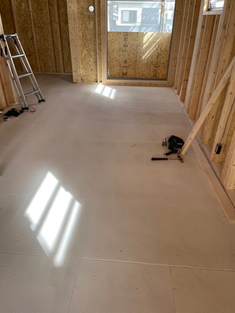 木造建築では内側の柱に9ミリ合板を指定された位置に打ち付けていきます。それによりさらに強い耐震化されます。